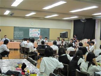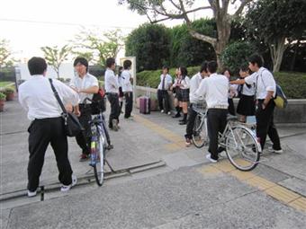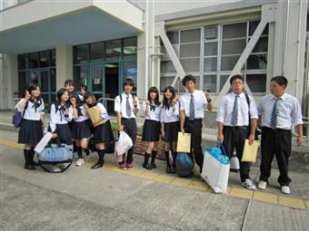 「がんばろう!つばさネットワーク」の主催により実施した2011年5月の気仙沼での被災地支援活動で交流した、気仙沼高校の生徒さん11名、先生2名を8月3〜5日に大阪に招待し交流しました。ホスト家族は玉島地区、水尾地区の連合自治会にお願いしました。交流の経費をねん出するために、2年「アジアの文化」、3年「時事問題」の受講生130名が分担して7月13.15.21.22日に阪急茨木駅前で街頭募金をしました。参加した多くの生徒には初めての体験でしたが、通り過ぎる人に「落ち込み」ながらも、募金してくれる人に「うれしくて涙が出そうになった」、と総じて「貴重な体験だった」と言ってくれています。