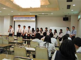8月4日(2日目):朝の7時30分に送迎担当の生徒が分担して迎えに行き、8時に北摂つばさ高校生にゲスト、ホストが集合しました。バスで大阪城の見学、大阪駅前第二ビルの大阪市立大学の文化交流センターへ移動し、関西の進学情報の説明を受けました。茨木市へ移動し、被災地支援活動報告会へ参加しました。北摂つばさ高校の生徒の発表と気仙沼高校の生徒、先生の発表に会場を埋め尽くした130人の参加者は聞き入っていました。(詳細は「がんばろう!つばさネットワーク」のHPをご覧ください)