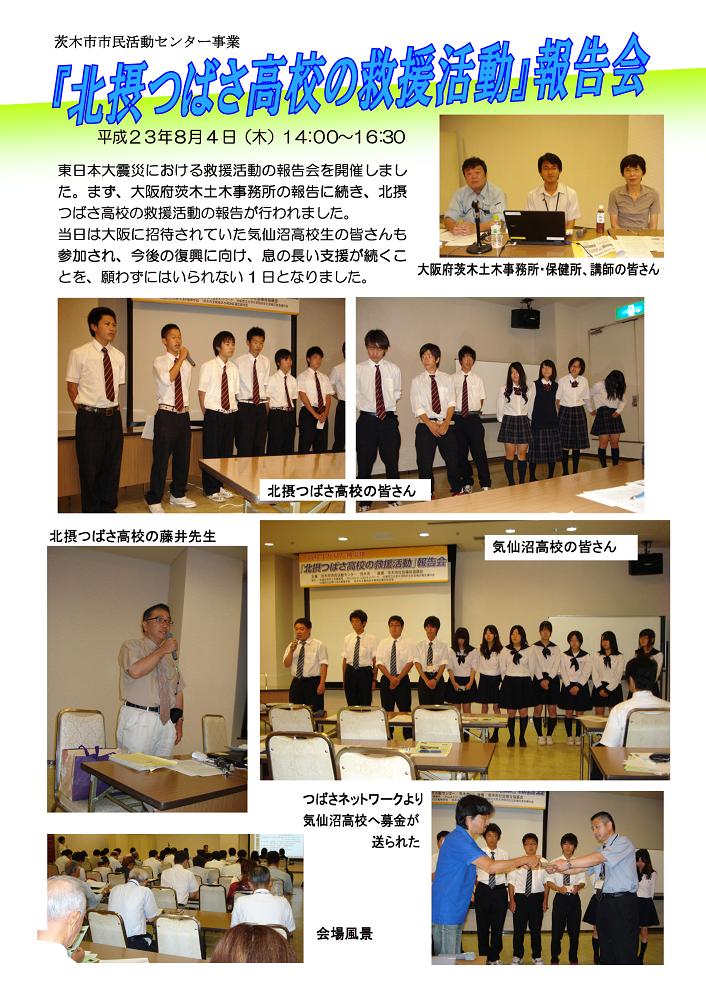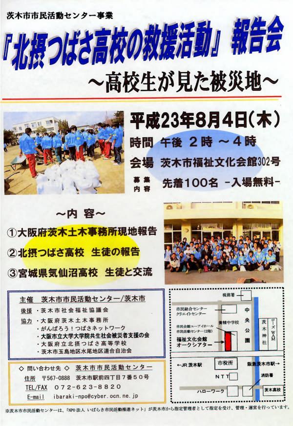 ■20110804の茨木市・茨木市市民活動推進センター主催の報告会のチラシ