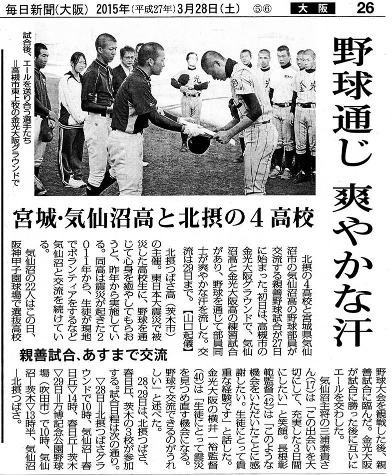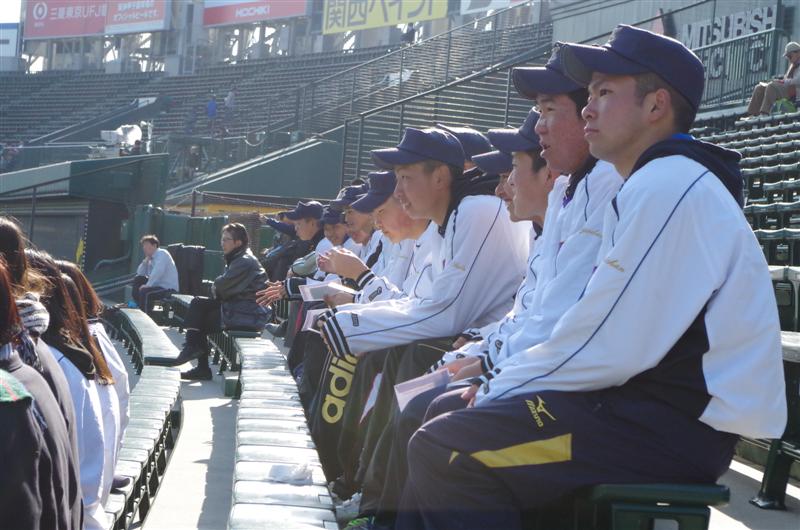 | 気仙沼高校のメンバーは来阪してすぐ甲子園に直行し、選抜甲子園大会を観戦。その後、金光大阪高校で2試合を戦った。20150327 |