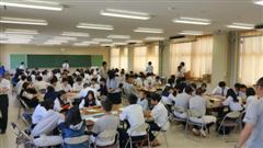 1学期の期末試験が終わったこの日、2交代制で80人を超える気仙沼ボランティアの参加者集会が行われました。ユネスコクラブのメンバーが参加し、詳細な計画を確認しました。