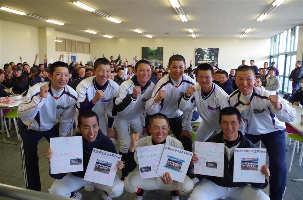 東日本大震災のことは、正直いま忘れてきていると思います。でも私は去年現地ボランティアで行って、そこで見て聞いてきたことをすごく覚えていて忘れれません。そこで何があったのかを知っている自分がいるから、今回のこの交流で会った野球部さんにはすごく感動しました。野球部さんがそのときどこにいてどうしてたのかは分からないけど、もしかしたら大切な人がなくなったり、自分もその時危なかった人もいたかもしれないのに、大阪にちゃんときて野球部としていることが本当にすごいことなんだなと思いました。だからこの交流会のおかげで、もっと皆んなが震災のことを調べたり知ってくれたらいいなと思いました。今年の修学旅行では震災学習として宮城にいくのでもっと自分も被災地でなにがあったのか学べたらいいなと思っています。