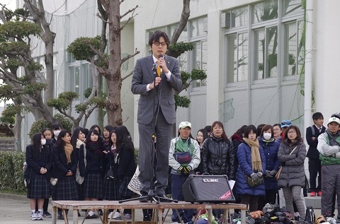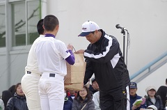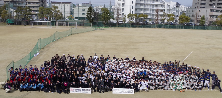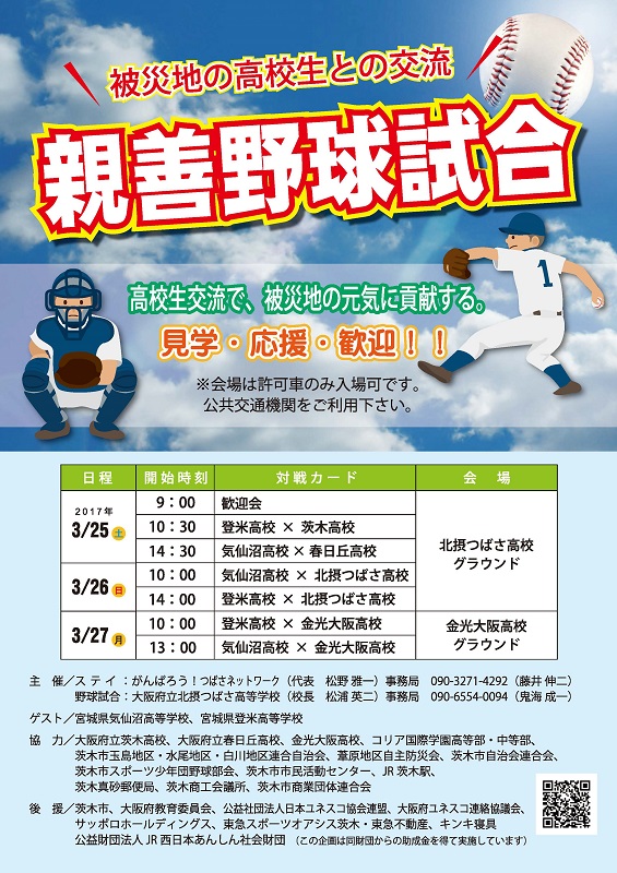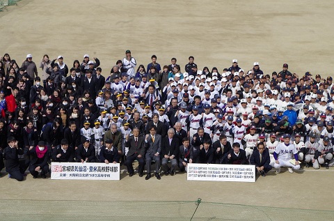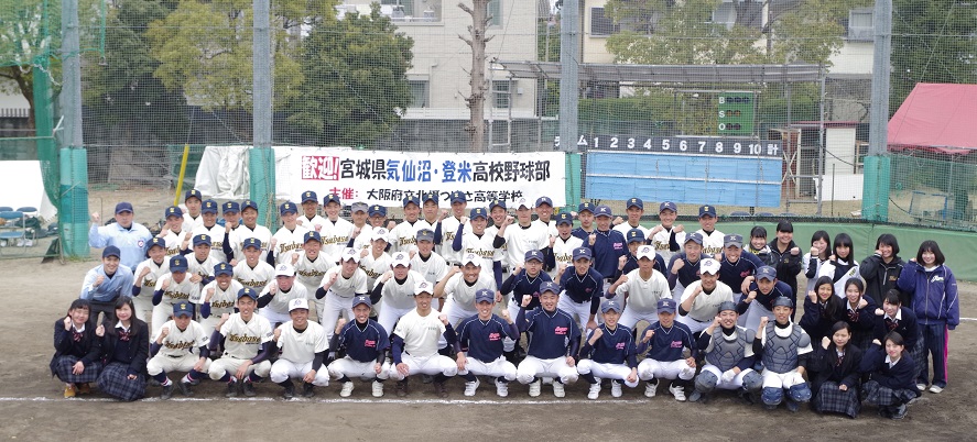 | 2017年3月25日 歓迎会 登米高校vs茨木高校 気仙沼高校vs春日丘高校 の親善試合 茨木市福岡洋一市長の挨拶と始球式 ダンス部応援演技 |