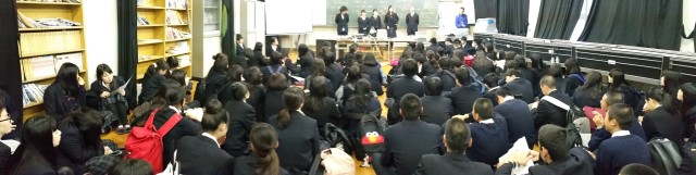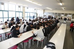 | この日は試験返却の登校日、ホームルームでの作業の後、野球部、ダンス部、ユネスコクラブ、国際エリア10期生、11期生が社会科教室に集まりました。 金一宣久校長が参加者に檄を飛ばしたあと、実務的な集合時刻、場所、活動内容が確認された後、それぞれのグループから決意がのべられ、受け入れに向けての準備が整いました。 | |||
