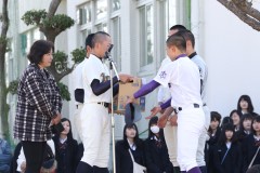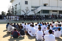 | この日は、葦原コミュニティセンターで葦原自主防災会の主催で防災集会が行われました。 4名の生徒が参加して、集会で3月の気仙沼高校、登米高校を招待しての野球試合についてアピールするとともに、チラシを配布して、募金をさせていただきました。 集まった募金16,590円は3月の受け入れに活用されます。 次回は1月21日の自主防災集会において活動報告をする予定です。 |