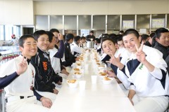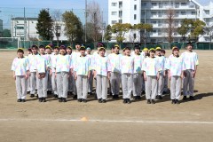 | 被災地からの高校生の受け入れは今回で7回目、野球部を招待しての交流試合は5回目です。 茨木市の福岡洋一市長からの歓迎挨拶と集合写真 20180324 大阪府立北摂つばさ高校にて。 | ||||||||||||||||||