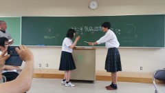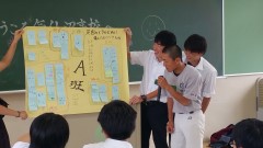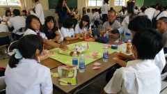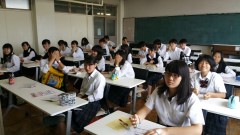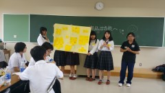 | 海の市にホスト家族が写真を届けてくれました。 | 坂口一美さんの講評の後、振り返り入力、解散。それぞれの学校での授業に向けて移動です。 | |
