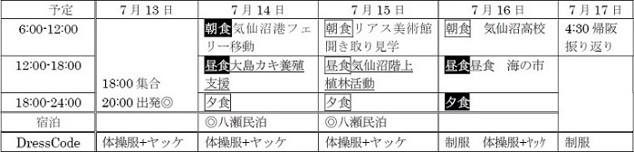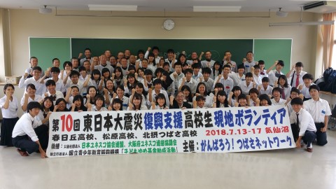気仙沼ボランティア:北摂つばさ高校 Haruka Abe 今回私は気仙沼ボランティアに参加しました。夕方集合する時はこれから初めての体験ばかりするんだろうなあと緊張と不安がありました。 2日目の朝着いてすぐ大島に行くためにフェリーに乗りました。かっぱえびせんをみんなで持って鳥にエサをやったりしました。私は鳥がほんとうに苦手やからエサを手でやるのが怖くて叫びまくってました。でも佐藤先生が手を掴んでサポートしてくれていつのまにか、かっぱえびせんを手であげることができました鳥のあの顔が今でも忘れられないですむっちゃ怖かったです。でもそれも滅多にないことだからいい体験をしたなあと今は感じています。 大島に着いて牡蠣の養殖をみたりカゴを洗ったり草を刈ったりお手伝いをしました。ずっと誰かのためになる何かをやりたいと思っていたので一つ一つ頑張りました。草刈りは腰が痛いし暑いし草も多くて果てしなくて大変だったけど少しでも役に立でているんだなと思うとやる気が出て最後までやりきることができました。大人数でやっても全部刈れなかったから人数が少なかったら本当に大変な作業だなと感じました。カゴを洗う作業もたくさんのカゴがあって汚れてて大変でした。でも綺麗になっていくカゴをみてすごく達成感が沸いてきて気持ちよかったです。 この地も津波で流されたと聞いてゾクッとしました。自分の当たり前だった生活や風景が一瞬で無くなることはわたしには全く想像できないけど本当にそんなことがあったと思うと他人事ではないし、いつか自分にも起こりうると思って話を聞きました。自分の住んでいるところにもし津波が襲ったら自分はどのような行動をしないといけないのか、何を持っていって逃げればいいのかとか改めて考える機会になりました。ほんとうに貴重な体験ができたとおもいます。 3日目は午前中、リアスアーク美術館に行き、震災学習をしました。美術館にはたくさんの悲惨な被災地の姿の写真が展示されていました。その一つ一つに詳しく状況が記載されていてどれも信じられるような状況ではありませんでした。今までも震災については勉強してきたし、ニュースもみて被災地の様子を見ていた気ではいたけど本当にその地に行き、展示されてるものを見るだけで大阪からニュースで見てたものよりもっと悲惨に感じるし胸が痛みました。私が美術館で見た展示物の中で1番印象に残ったのは車です。車のエンジン部分だけが展示されていました。運転席も後部座席もなにもありませんでした。本当に車だったとは到底思えないもので津波の怖さを目の当たりにしました。津波でこんな硬いものも跡形もなくなるんだ、と衝撃的でした。また、海にあるはずの漁船たちが家に突っ込んでしまっている写真をみてもほんとうに怖かったです。どうやって?どうゆうこと?ってなりました。 でも全部原因は津波で立派な家も簡単に流されてしまって倒壊して船まで陸に乗り出してくる。これが自分の生まれ育った街だったらと考えると言葉が出なかったし泣きそうになりました。最近、大きな地震を初めて経験したこともあってか地震の怖さをとても感じます。経験するまでは地震なんかなんとかなるやろうと甘く見ていたけど体験してみてそんな甘くみてはいけないものだと気づき、そして東日本大震災のニュースを見るたび、以前まで想像もしてなかったもし自分の街がこうなったら??と考えるようになりました。 大きい地震は一度だけだったけどそれが本当に怖くて今でも記憶に残っています。でも東日本大震災はその怖さに加えてすぐ津波もやってきたとおもうと震えました。地震でもたくさんの被害が出たけどやっぱり多くは津波で、津波はなにもかも奪っていく恐ろしいものだということを今回心から感じることができたし南海トラフもきっとくるし震災というのは決して他人事ではないと思います。今くるかもしれないし明日かもしれないしいつくるかわからないものだから命だけでも助かるように対策をしておかなければならないと思いました。 午後は植林活動をしました。大きな木に捕まって大切な命が救われたと聞いて今からする活動はほんとうに重要でいつかまた津波が来た時にまた人の命を助けることができると思い前向きに取り組みました。みんなで木を植えて水やりをしたりしました。水やりがほんとうに大変でした。水をバケツの中いっぱいに入れてそれを持って一つ一つの植物へやりにいかないといけなくて腰も痛いし暑いしで大変でした。でも働いている方に聞くと毎日欠かさずやってると笑顔で言っていてうわあ文句言ってられないなあと思った。いつか自分が植えた木やみんなが植えた木が人の命を助けるものになればいいなと思っています。 最終日は気仙沼高校との交流会でした。地震の話とかはしなかったけど、ゲームをしたりして楽しみました。こういう交流会がなければ気仙沼高校の生徒のみん