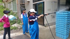 | おかあちゃんも頑張る | たわしの威力 | 高圧洗浄機にはかないません |