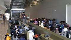 | 月立小学校で集合の後、健康チェックで問題なしを確認して、バスで移動。 | リアスアーク美術館 | |