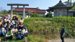 | 地域との繋がり 松原高校 Yutani Nanaka 今回私は東北ボランティアで行った宮城県で3日間様々な体験をさせて頂きました。そこで見たもの感じたことをまとめます。 まず1日目に南三陸町を見たことですが1年前には出来ていなかった道があったりして復興はまだ続いていることを感じました。防災庁舎はいつ見ても言葉には出来ないくらい考えされられるものがありました。南三陸町を後にし大島に向かいました。 大阪で生活しているときには船に乗って移動する事なんてほとんど無いので凄く楽しくて今でも船に乗ったときに飛んでいたカモメにエサをやったことや海風が気持ちよかったことをはっきりと覚えています。20分ほど船に乗ったあと今度は山登りをしました。大島に野生のクマが来ているという情報を聞いてもしかしたら会えるのかなと思っていたのですが会えませんでした。夏に山登りなんてしていない人からしたら「しんどそう」「暑そう」と思うかもしれませんが、私はこの山登りがとても好きでした。なぜなら夏だけど木がたくさん生えているので太陽の光を直接浴びることが少なく、鳥がときどき鳴いていて自然を感じることが出来たからです。 山登りを終え牡蠣養殖場に到着してから3つの体験をさせて頂きました。まず1つ目は牡蠣養殖で使うカゴの掃除です。正直最初はやる気が出なかったのですが、実際にやってみると同じことを続けたり、小さい作業の積み重ねが好きな私にとって最高の活動でした。めちゃくちゃ汚れていたカゴを新品のように綺麗にすることでやりがいを感じました。2つ目は草むしりをしました。津波が来るまでは庭として使われていたことを知り驚きました。草をむしるとミミズや虫が出てきて可愛かったです。そして3つ目に船に乗らせてもらって実際に牡蠣を育てている所を見に行きました。海がすごく綺麗で海の中の牡蠣が良く見えました。私は牡蠣が大好きなので牡蠣の話をたくさん聞くことが出来たことがすごく思い出に残っています。 牡蠣養殖のボランティア活動を終え大島を後にし民泊先に向かいました。去年は月立小学校の新校舎?で集合したのですが今年は旧校舎だったので驚きました。旧校舎はとても校舎が古くて味が出ていてとてもいい雰囲気だなと思いました。八瀬に住む人達との顔合わせのときに去年民泊させてもらった家族と会えて元気な姿を見れたことがとても嬉しかったです。 私は今年菅原光子さんと春雄さんのお家に泊まらせていただきました。お二人の家はとても広くてお米を自分たちで作っていることを知りました。私は民泊のご飯をすごく楽しみにしていたのでその事を聞いて更にご飯が楽しみになりました。夜ご飯をみんなで食べているときに近所に住んでいる人が長芋を持ってきてくれました。私が普段暮らしている大阪で突然近所の人が野菜を持ってきてくれても「危ないもの入ってるのかな」とか少し疑ってしまうと思います。しかし菅原さんたちが生活している所はみんなで助け合って生活しているんだということを学びました。菅原さんはお米を作っているから、近所のお米を作っていない家族に分けてあげそして逆に野菜を作っている人は作っていない菅原さんに分けてあげる。私が普段過ごす町の何倍も地域との繋がりがあるんだと思いました。 宮城県は大阪府に比べると都会ではないと思います。「田舎だから」という理由で都会の人は田舎に住んでいる人をバカにした言い方で話しているのをよく耳にします。「周りに山しか無い」「近くにコンビニとか大きなスーパーも無い」などみんな都会に住む人は田舎に「無い」ものを馬鹿にします。しかし都会にも「無い」ものはもしかしたら田舎よりもあるのではないかと私は思いました。確かに徒歩5分で最寄り駅があったり大きな病院やスーパー、コンビニがあるのは便利です。しかし便利すぎるせいで都会に住む人は「地域との繋がり」がほとんど無いと私は思います。だから普段地域との繋がりがほとんど無い生活をしている人が田舎にいくと温かい気持ちになれるのは昔は当たり前のように感じていた繋がりを感じることが出来るからだと私は今回思いました。 東北ボランティア2日目はまずリアスアーク美術館に訪れました。昨年もリアスアーク美術館には訪れたのですが写真や被災物を見るといつ見ても、何度見ても考えされられるものがあります。時間を戻して亡くなった人の命を助けることはどうやっても私には出来ません。だからこそ、津波や地震が人の命や大切な家や大切なものを奪っていったことを知った私だからこそ私は行動しなくてはいけないと思いました。その行動が具体的にどんなものなのかまだ分かりませんが、もしかしたらこのことを知ったことも1つの行動なのかなと思います。しかし知るだけで終わらせないようにしたいと思います。 その後海べの森をつくろう会の活動に参加しました。木を植えるとこでそして植えた木を育ててくれ