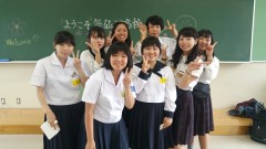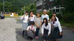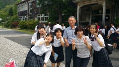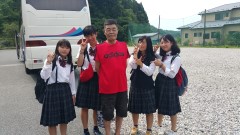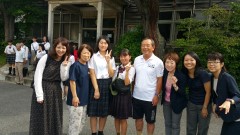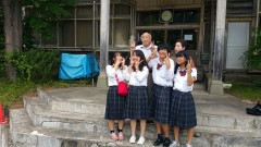 | 月立小学校での集合写真。ホスト家族ともお別れです。 | ||