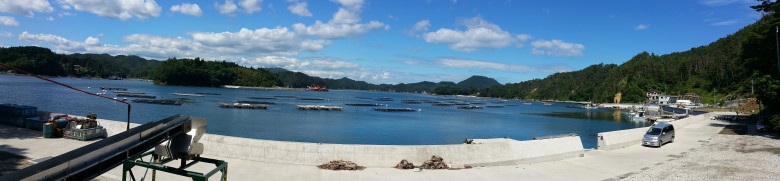 | 2011年3月11日の東日本大震災では、すべての養殖イカダが焼失したが、全国からの支援もあり、イカダの数も元の数に戻ってきた。20190713 | ||