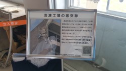 | この壁の向こうに冷凍工場の建物が激突 | 向洋高校の生徒は全員避難し助かった | 校舎の間に流れ着いた残骸が当時のまま |